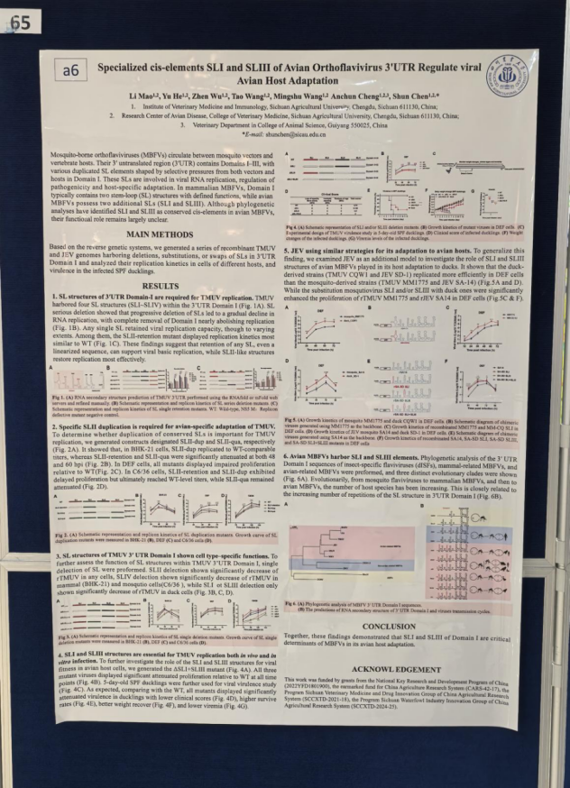 2025年10月13日-16日,由新加坡杜克-新加坡国立大学医学院主办的第 31 届肝炎病毒-黄病毒(HCV-Flaviviruses)国际学术研讨会在新加坡NGEE ANN KONGSI AUDITORIUM召开。动物医学院免疫学研究所陈舜教授受邀参会并作“Specialized cis-elements SLI and SLIII in 3'UTR of Avian Orthoflavivirus Regulate its Avian Host Adaptation”(3UTR特殊SLI和SLIII二级结构调控禽蚊媒黄病毒的禽宿主适应性的机制)报告。本次会议,中国区域仅清华大学和四川农业大学的2位学者受邀作报告。此外,我所2023级预防兽医学博士研究生毛李的投稿论文入选会议poster并在大会期间做展示交流(中国区域仅5篇poster入选)。