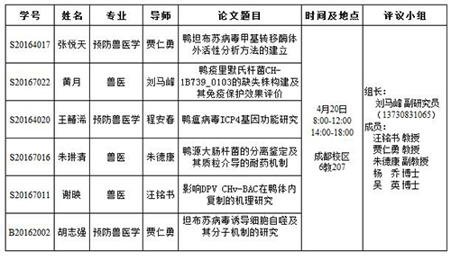 2017年春季研究生开题报告(第三组)时间安排