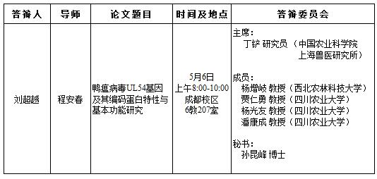 2017年上半年预防兽医学博士学位论文答辩安排(第一组)